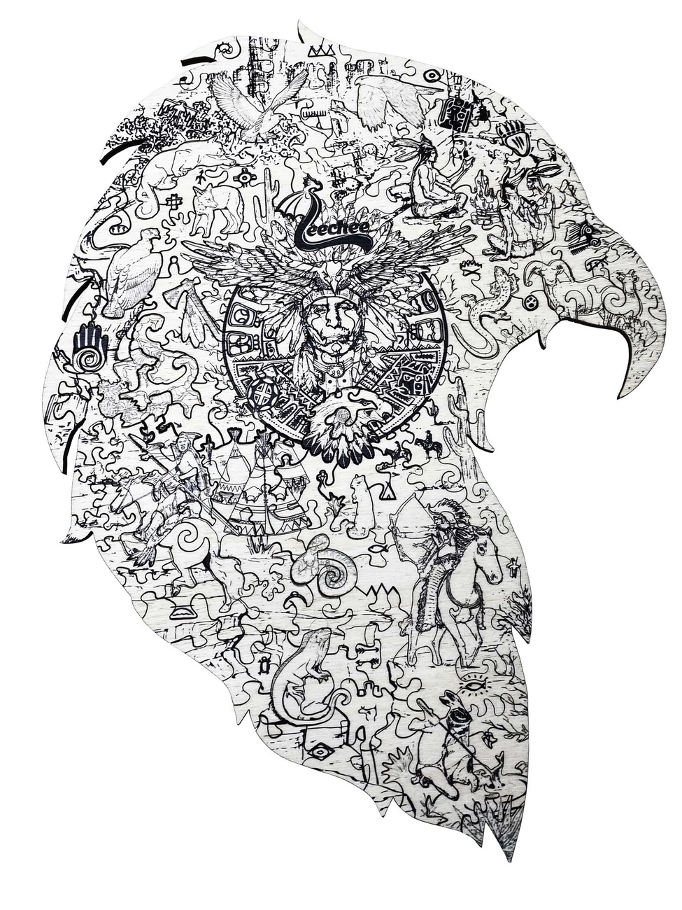 The Freedom Hawk Фигурный деревянный пазл The Freedom Hawk от компании Leechee - прекрасная зарядка для ума и увлекательное времяпровождение одному и в компании друзей или семьи. Собирая пазлы, вы найдете маленькие причудливые фигурки индейцев, страуса, койота, игуаны, птиц в полете, маски индейцев и другие изображения. Данный пазл вам позволит отвлечься от неприятных мыслей, снимет усталость и раздражение, позволит успокоиться и отправиться в мир дикой природы. Обратная сторона также имеет уникальный рисунок с оригинальной сюжетной линией. Когда пазл ястреб будет полностью собран, вы увидите интересную сюжетную историю об индейцах. Пазлы Leechee изготовлены из экологически чистой сертифицированной светлой древесины без искусственных добавок. Такой пазл не боится воды, поэтому вы можете не бояться, что капли чая могут попасть на пазл. Но мы не рекомендуем намеренно помещать детали головоломки в воду на долгое время. Картинка отличается яркой высококачественной печатью, которая не выцветает со временем, приятным природным ароматом и элементами самой необычной формы. Деревянный пазл для взрослых The Freedom Hawk - Подарок, который удивит и запомнится. Головоломка упакована в подарочную деревянную коробку премиум-класса. После того как вы собрали пазл, можете повесить его на стену в качестве картины. Это добавит привлекательную атмосферу в ваш дом. А коробку вы можете использовать в качестве шкатулки. Средний уровень сложности. Пазл можно собрать за два часа.