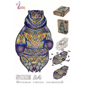 Медведь знаком всем - это могучее и мудрое животное, образ которого широко освещается в фольклоре. Медведи в мифах и легендах выступают как символ дремучих таежных глубин, это духи-целители, защитники, символизирующие мощь и покровительствующие лесу. Новый пазл из дерева предоставляет возможность познакомиться с богатством мира лесных животных. Деревянный фигурный пазл "Spirit of the wood" - это возможность на несколько часов погрузиться в увлекательное занятие. Деревянные детали выполнены с большим мастерством и стыкуются друг с другом идеально. Детали, из которых получается цельная картина, имеют оригинальную форму. Они выполнены в виде рыб, лесных животных, птиц. Для изготовления использованы экологически чистые материалы - пазл создан из дерева, на которое нанесена качественная печать. Аромат дерева помогает ощутить атмосферу таежных лесов. Такое изделие может стать прекрасным подарком. Уровень сложности пазла характеризуется как выше среднего.